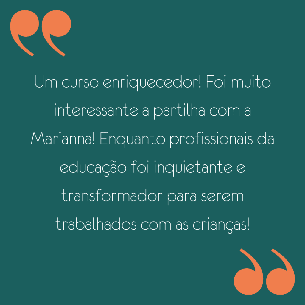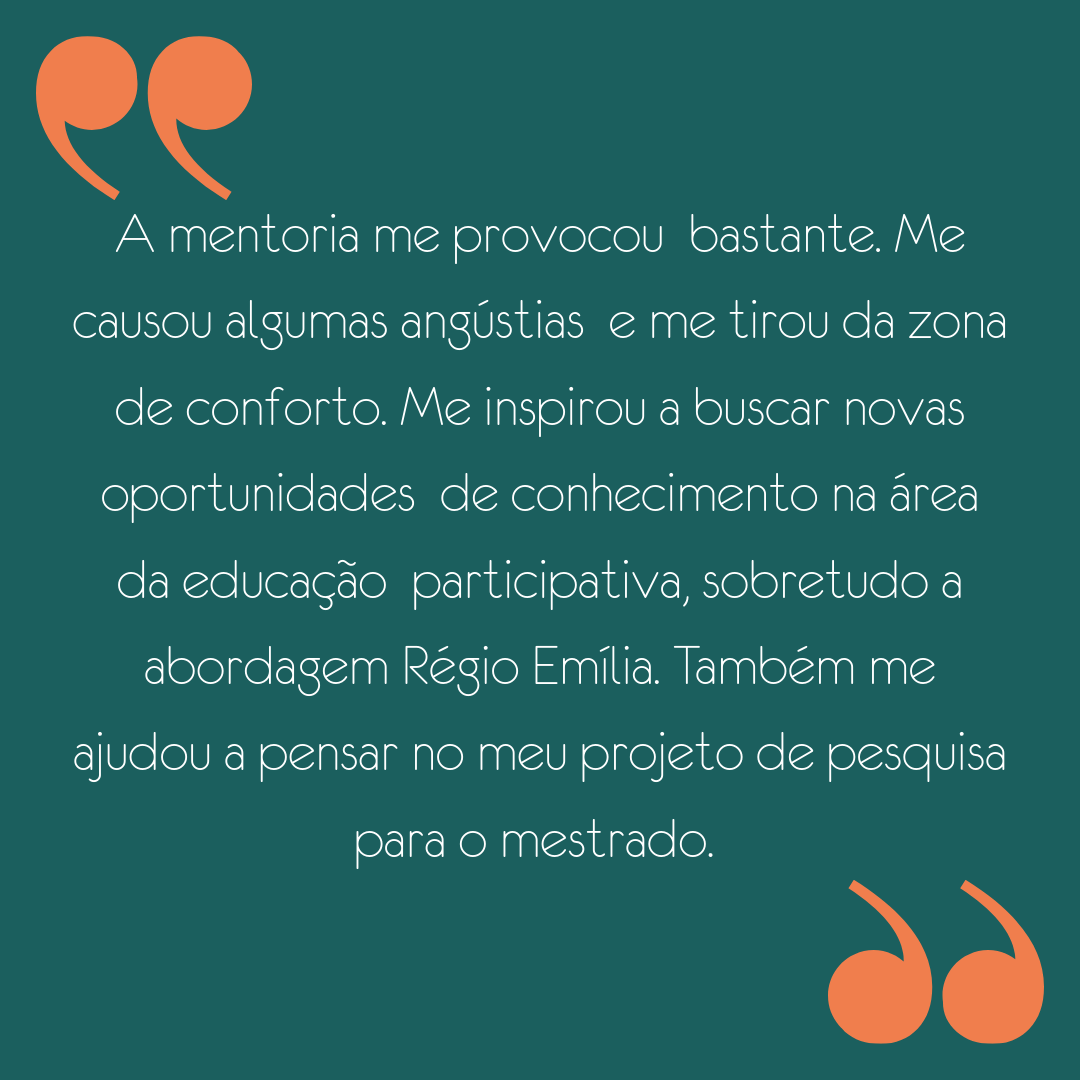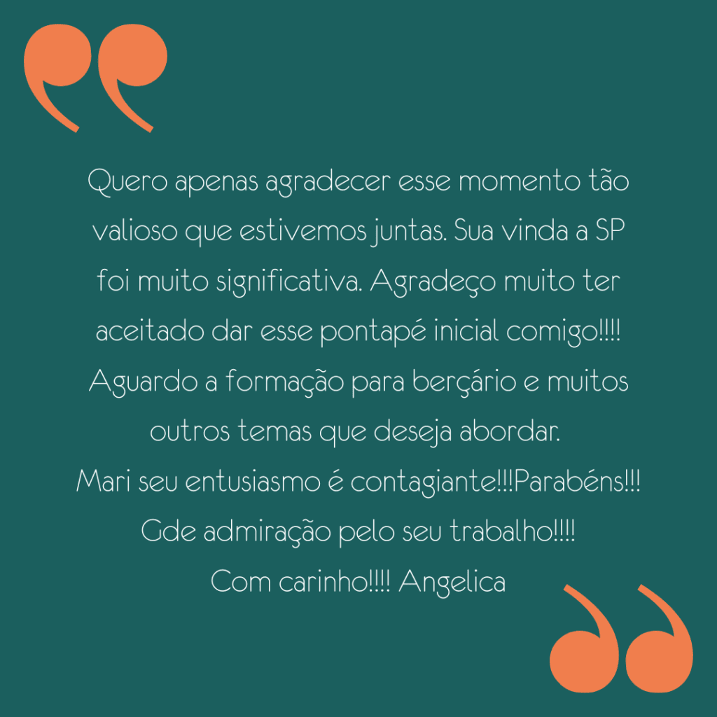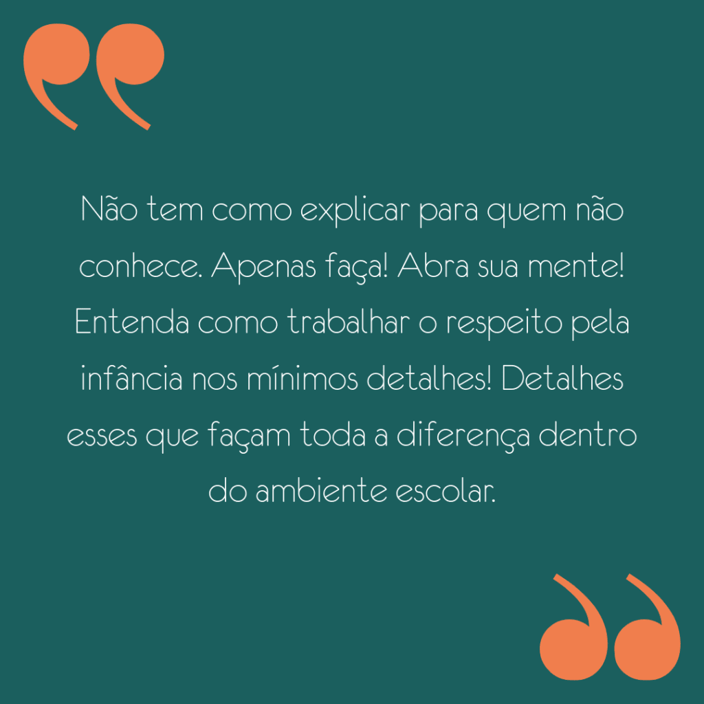 Com o meu trabalho, estimulo a reflexão sobre a primeira infância e convido adultos a repensarem as suas atitudes para promover o respeito à infância e o vínculo positivo da criança com a aprendizagem, tornando-a mais potente e criativa.